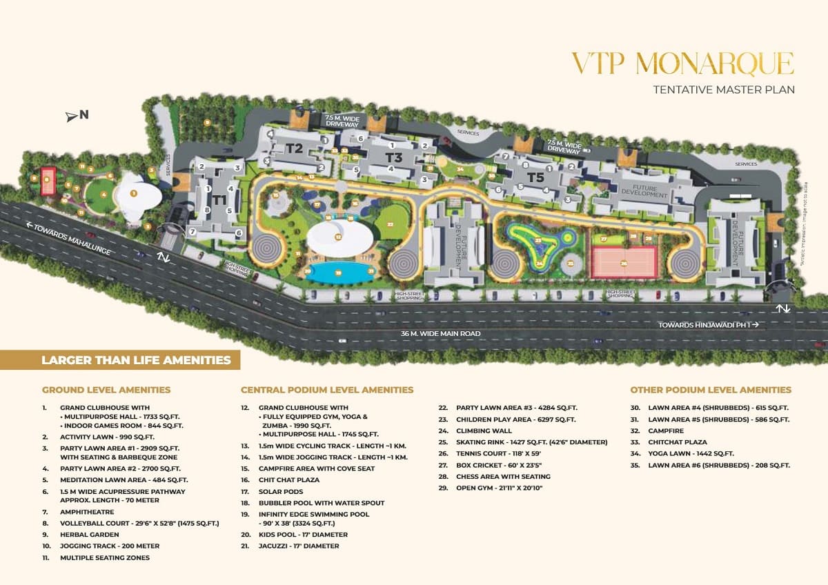 VTP Monarque is a premium residential project built by VTP Realty, situated in the vibrant city of Hinjewadi, Pune. VTP Monarque is currently in its pre-launch phase and represents the finest option to express your interest. The latest offering from VTP includes thoughtfully designed properties such as 2 & 3 BHK luxurious apartments for its residents. Boasting a prime location in Hinjewadi, residents will enjoy easy access to key landmarks of the city, including Sinhagad Fort, Pashan Lake, and many others, ensuring the utmost convenience and connectivity.